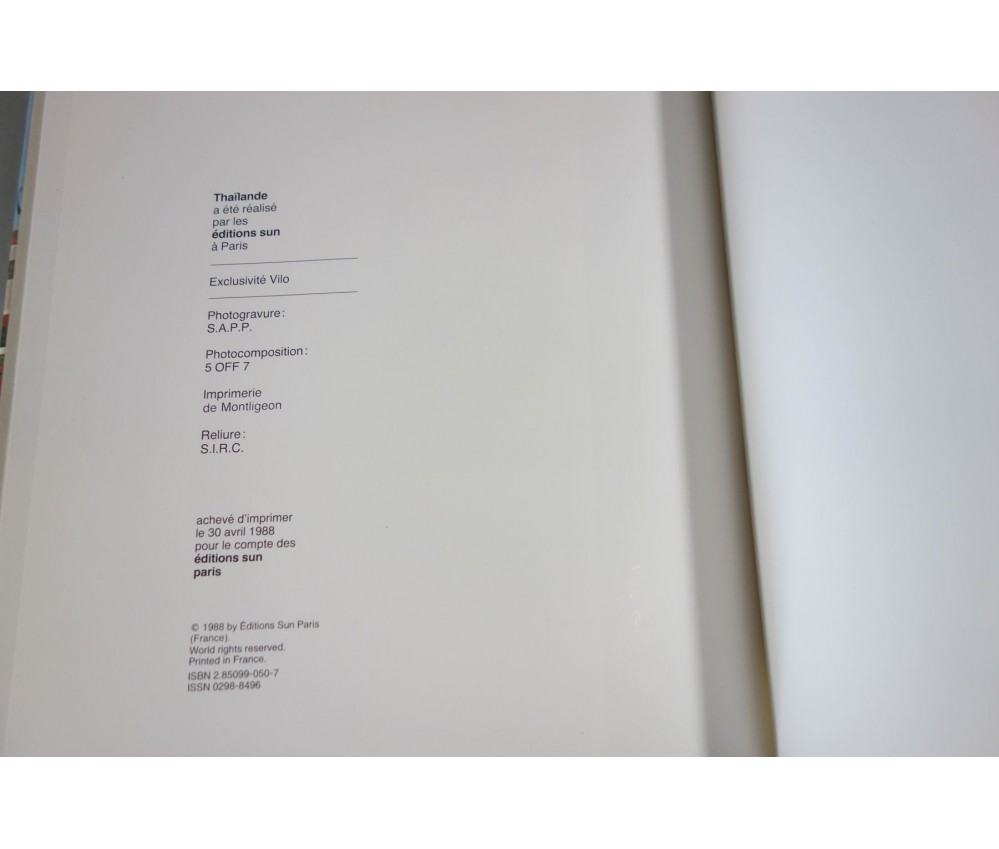 Voir nos visuels, un des exemplaires réservés pour La Reliure Intégrale, limité à 300 numérotés, ici le n°5. Belles photos en couleurs. Editions Sun, Vilo, 1988. Livre in-4, reliure toile sous jaquette illustrée (légères usures et marques), intérieur propre, beau papier. Envoi rapide et soigné! (A6)