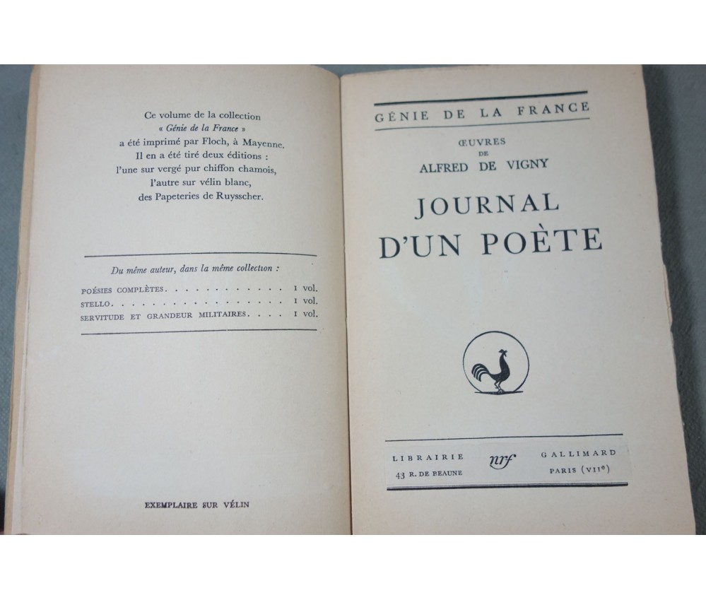 Voir nos photos, exemplaire sur vélin, étiquettes collées NRF Gallimard, Génie de la France, 1934. Livre in-12 broché, dos usé et couverture jaunie, intérieur propre légèrement jauni. Envoi rapide et soigné! (F2)