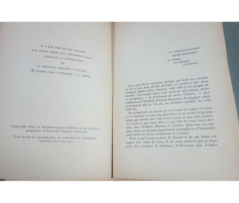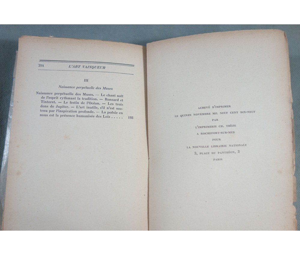Voir nos visuels, bon exemplaire. Paris, Nouvelle Librairie Nationale, 1919. In-12 broché, couverture imprimée (légères usures et marques), intérieur jauni, sur vélin. Nombreux livres anciens et rares à découvrir dans notre librairie! Envoi rapide et soigné! (F24)