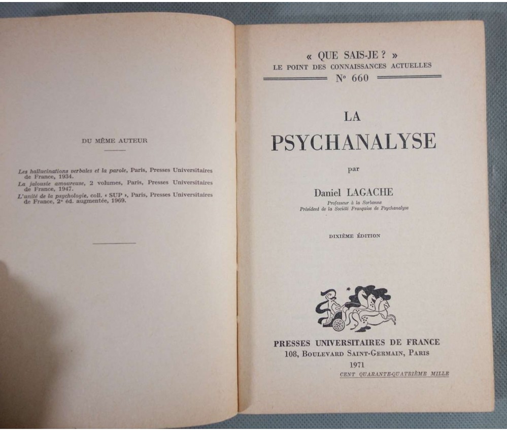 La psychanalyse - D. Lagache - Ed. PUF, 126 pages, 1971, 10ème édition.