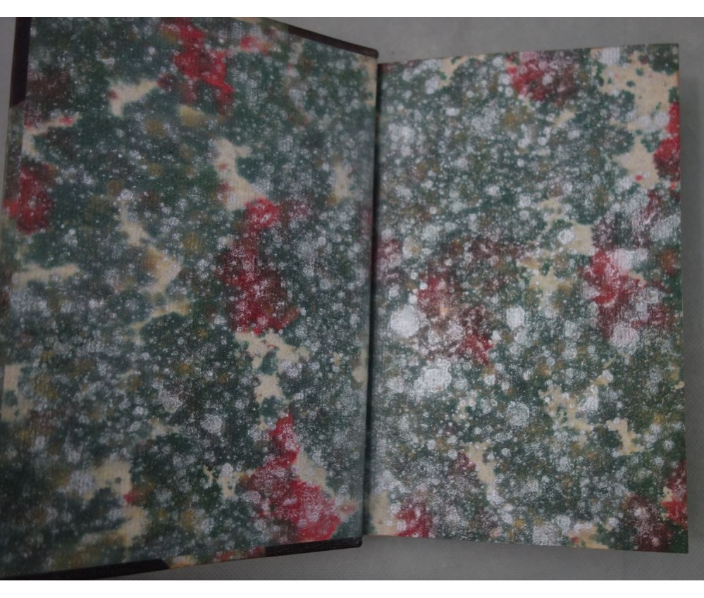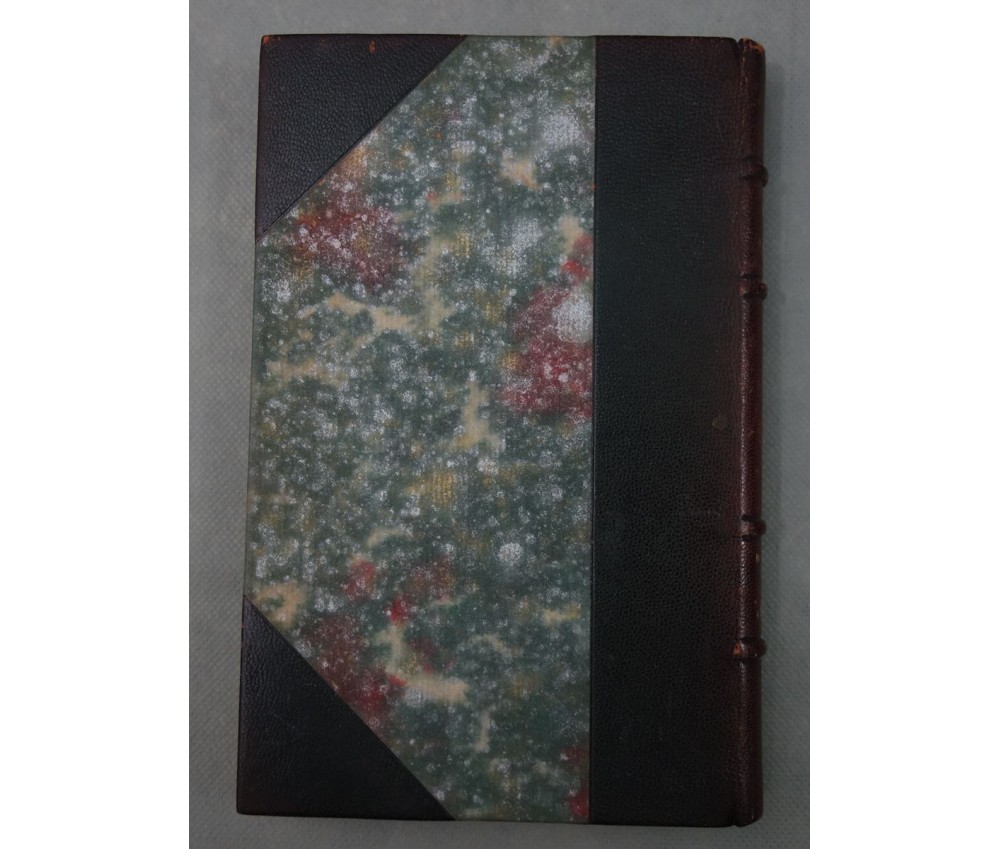 Grand In-12, reliure demi-cuir à coins (légères usures des bords et coins, éraflures), tranche de tête dorée, beaux plats et gardes marbrées, intérieur propre sur un beau vélin, légèrement jauni, des taches.