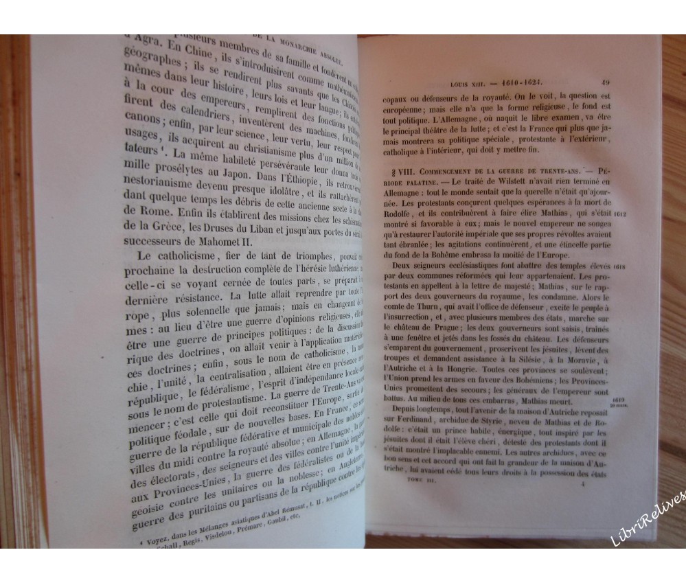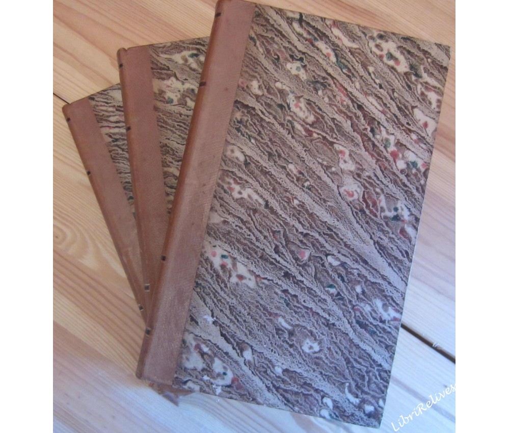Voir nos visuels, tomes 1 à 3 (jusqu'en 1789), Paris, Paulin et Hetzel, 556 + 621+ 551pages, 1838 - 1839. Ensemble complet en soit puique le 4è tome paru en 1840 et fut imprimé par un autre. La mention de "deuxième édition" parait quant à elle fictive, cet exemplaire étant de la même année et chez les mêmes éditeurs que l'édition originale : cf. VICAIRE V-108-109. In-8, magnifiques reliures romantiques demi-cuir, dos lisses à faux nerfs, plats et gardes marbrés, intérieur bien blanc, en grande partie non coupé, rares rousseurs, usure des coins. Très bel et rare ensemble. Envoi rapide et soigné! (H13)