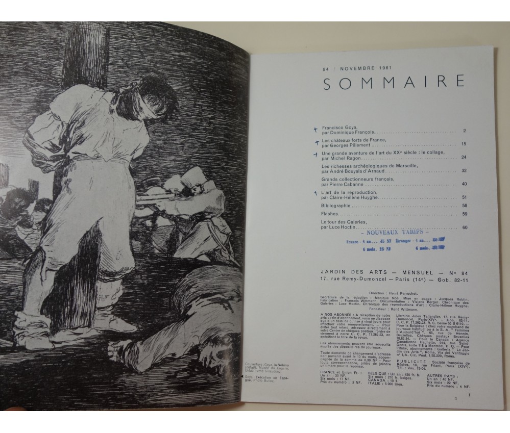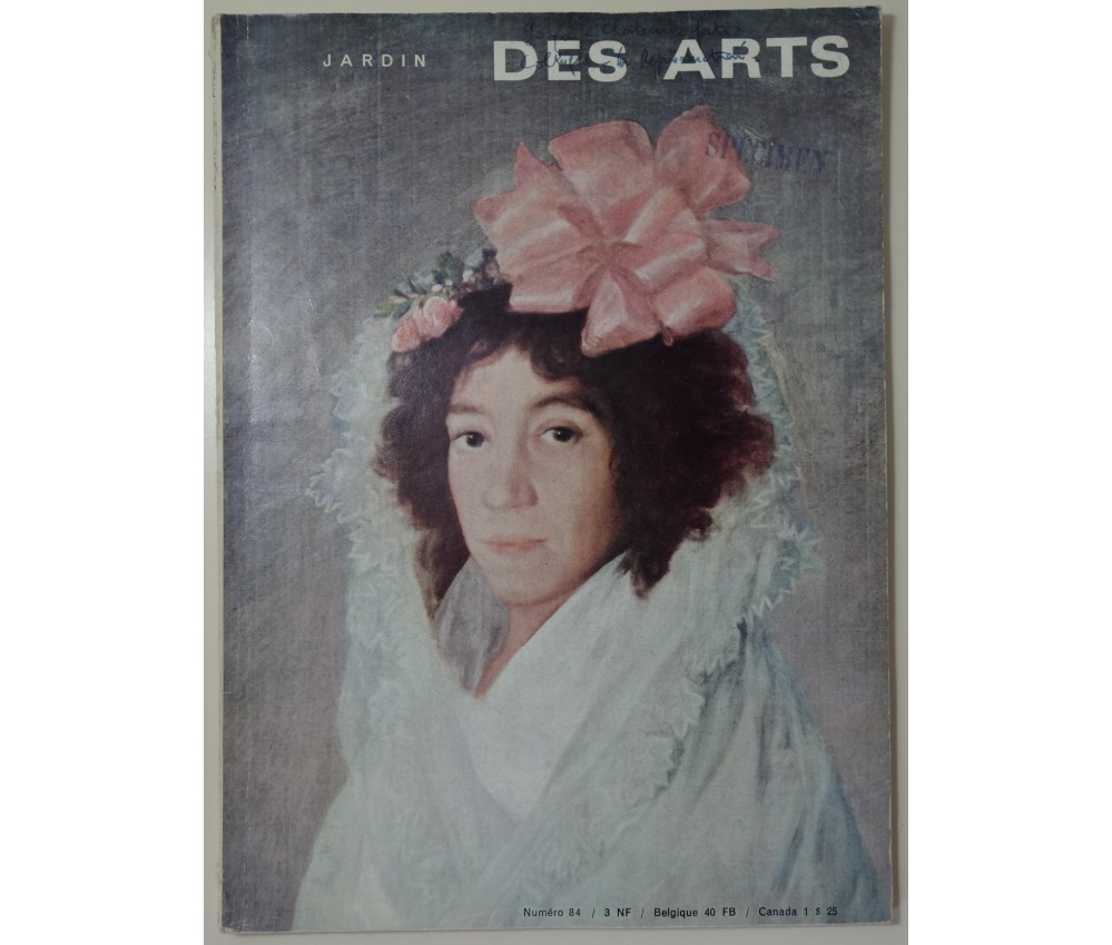 Voir nos visuels, Jardin des Arts n°84, 1961. Belles reproductions en pleine page. Revue brochée, petit in-4, couverture marquée, salie, tampons specimen et inscriptions, intérieur propre mais quelques annotations. Envoi rapide et soigné! (Z16)