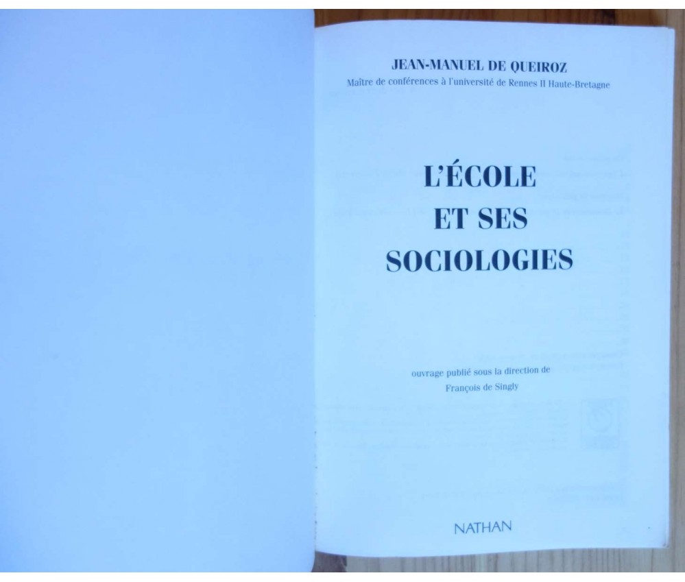 L'école et ses sociologies - J-M. De Queiroz - Ed. Nathan Université, 128 pages, 1995.