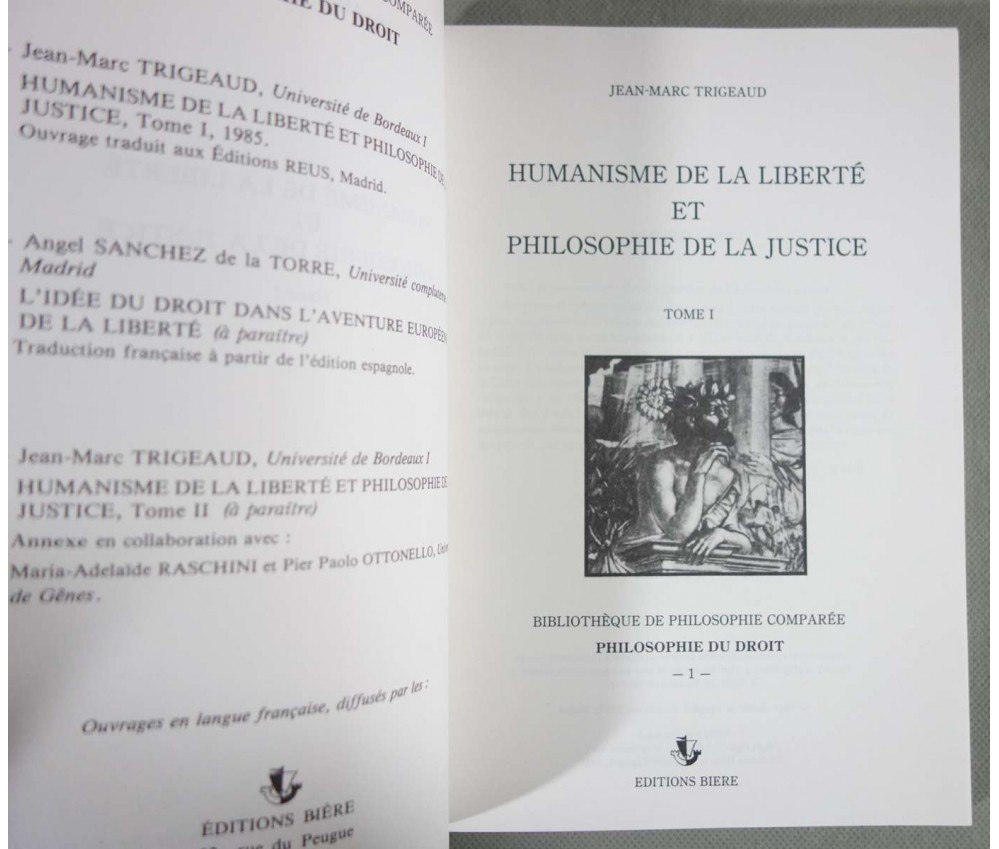 Humanisme de la Liberté et Philosophie de la Justice - Tome 1 - Jean-Marc Trigeaud - Ed. Biere, collection Bibliothèque de Philosophie Comparée, Philosophie du Droit, 169 pages, 1985.