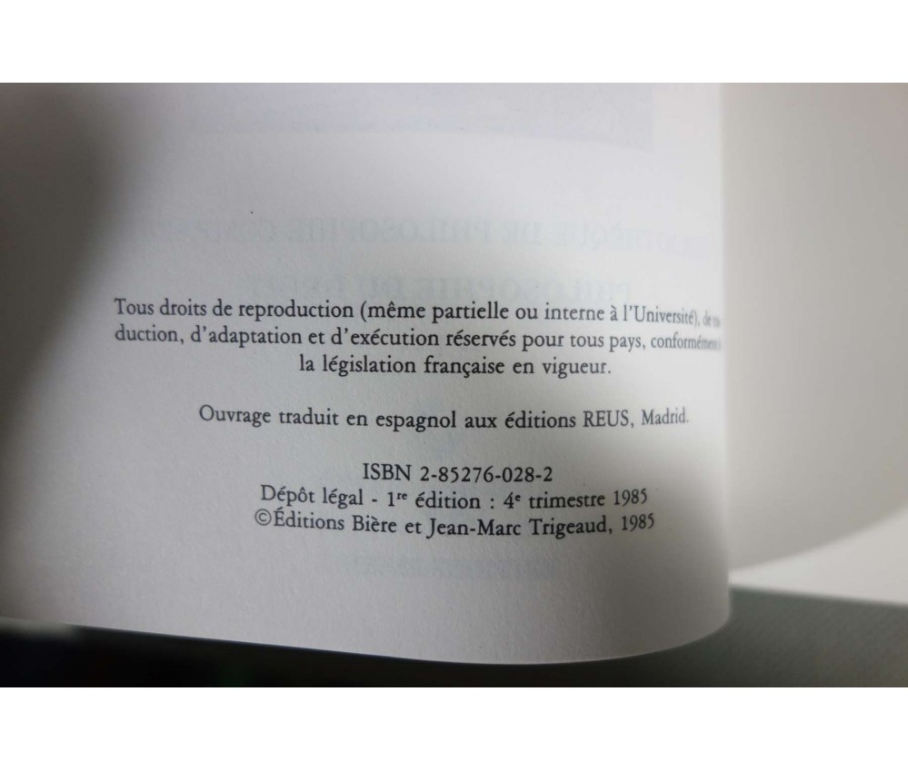 Voir nos visuels - Ed. Biere, collection Bibliothèque de Philosophie Comparée, Philosophie du Droit, 169 pages, 1985 - Livre in-8 broché en très bon état, intérieur très propre, légèrement jauni. Envoi rapide et soigné! (A5)