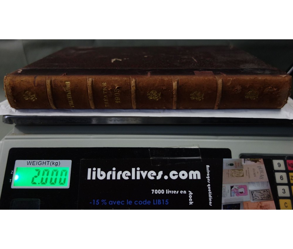 Voir nos visuels, 1 volume contenant environ 14 pièces. Paris, l'Illustration, 1905 (année non complète). Nombreuses gravures in texte en noir. Petit In-4, reliure demi-cuir (coins usés, accrocs et éraflures), intérieur plus ou moins jauni, quelques taches. Nombreux livres illustrés et belles reliures à découvrir dans notre librairie! Envoi rapide et soigné! (F9)