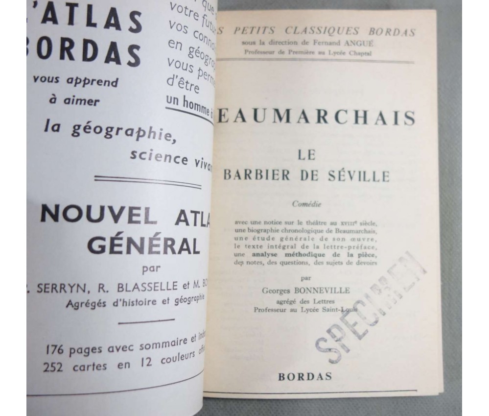- Le barbier de Séville: 1962, 144 pages. Livre en bon état, intérieur propre, mais jauni avec tampon "Specimen" sur la page de titre, légère usure des coiffes.