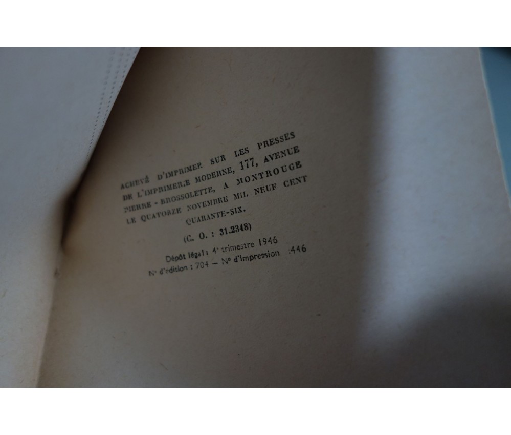 Voir nos photos, exemplaire vendu en l'état! nrf - Gallimard - 2ème édition, 1946. In-8 broché, couverture abimée et décollée du corps, intérieur jauni. Envoi rapide et soigné! (F26)